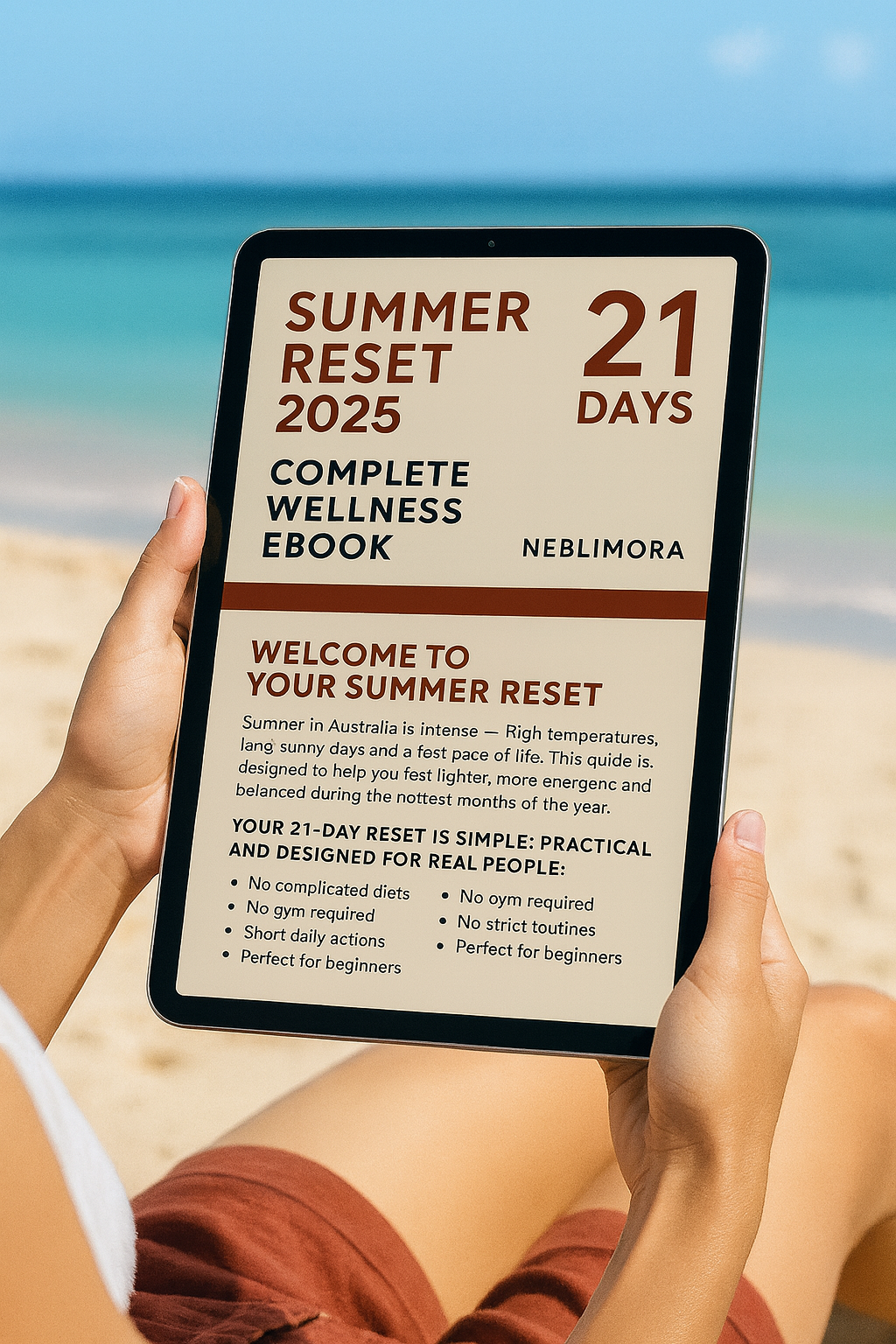 Summer in Australia is intense — high temperatures, long days and busy routines. This guide helps you reset your body and mind in just 21 days with simple routines you can follow at home, at the office, or on holidays.